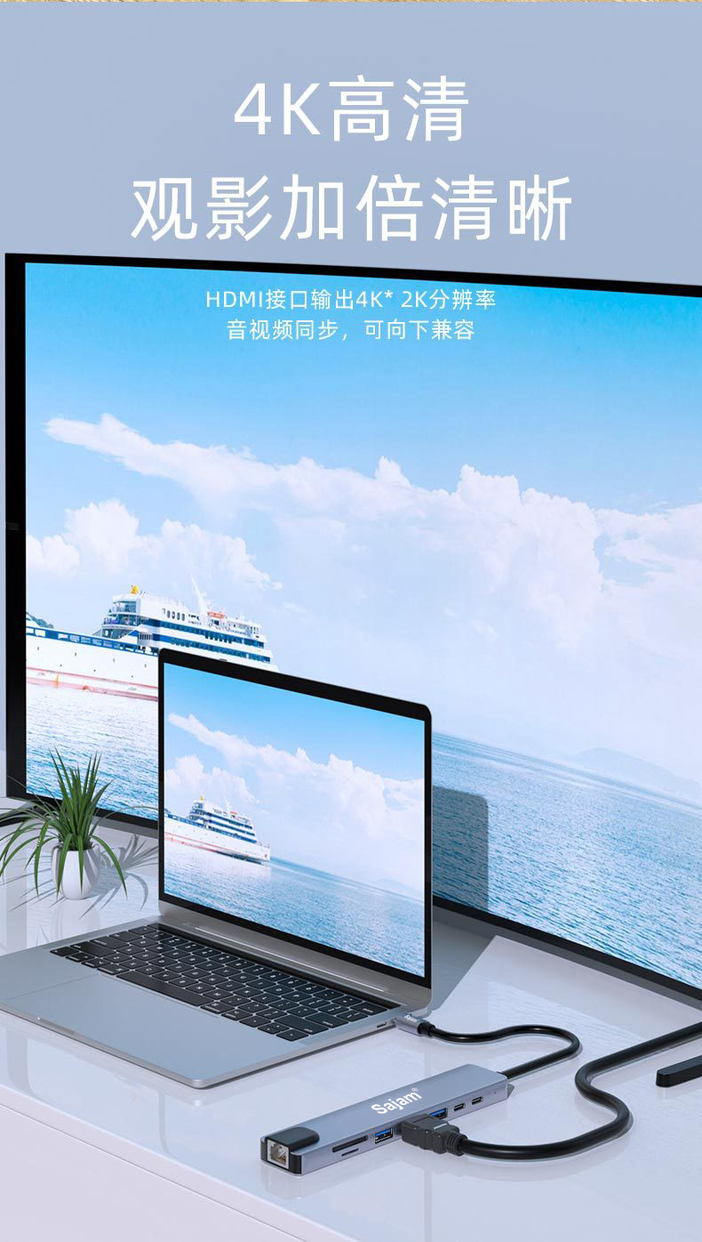 热销爆款type-c扩展坞八合一HDMI PD多功能拓展坞 usb