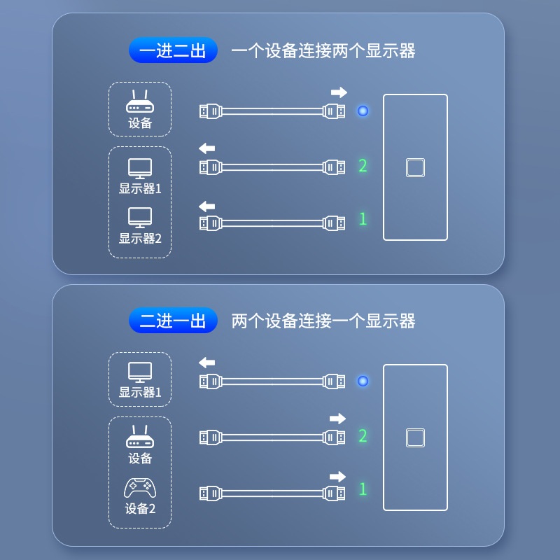 三蓁hdmi分配器一分二4K高清双向切换器